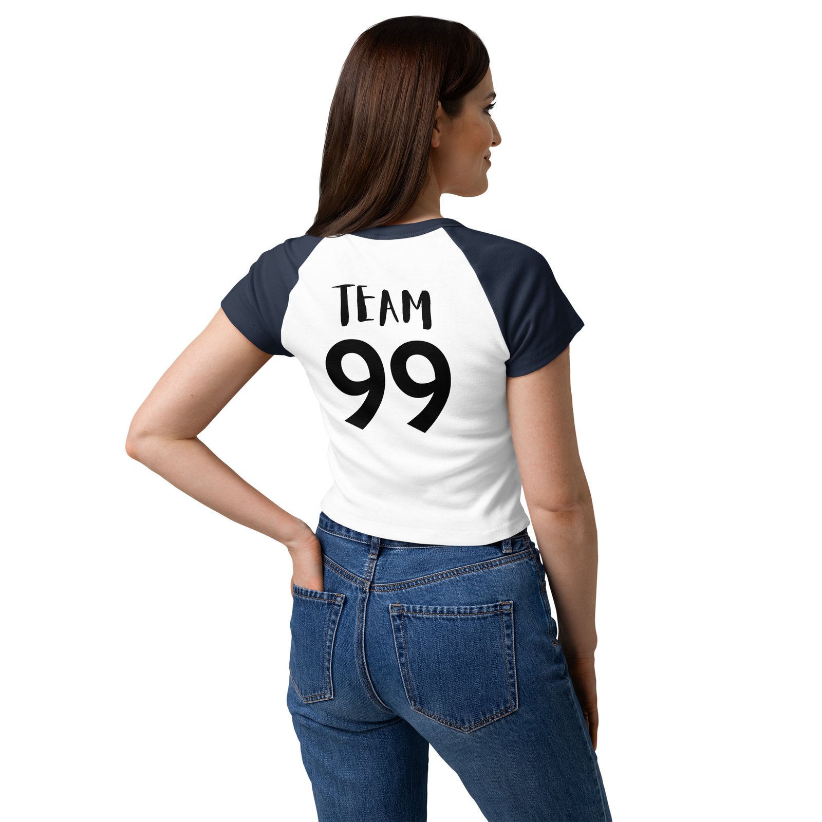 Soft, sporty, and easy to style—this baby tee updates a classic baseball-inspired design. With its fitted cut, mid-length body, and soft ribbed texture, it pairs effortlessly with jeans, shorts, or joggers for a casual, flattering look.